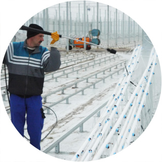 Die Gewächshausfläche beträgt 13 ha. In den Gewächshäusern ist ein betonierter Weg im Umfang von 0,2 ha vorhanden.