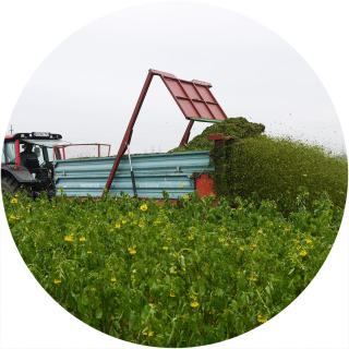 Ausbringung der der gehäckselten Paprikapflanzen als Gründünger auf den Feldern.
