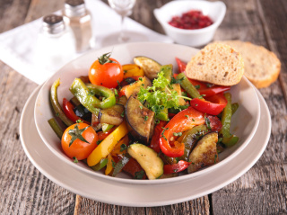 Das scharfe Paprika-Tomaten-Gemüse passt als Beilage zu Koteletts und Salzkartoffeln, aber auch zu Bratenfleisch.